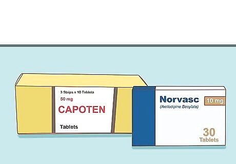 Use medication to lower your blood pressure. There are 5 classes of drugs that lower blood pressure. As with cholesterol-lowering drugs, your doctor may prescribe more than one medication from different classes, depending on your particular condition. The classes of drugs that lower blood pressure are: Angiotensin converting enzyme (ACE) inhibitors, such as captopril (Capoten) or lisinopril (Zestril) Calcium channel blockers, such as amlodipine (Norvasc) or Bepridil (Vascor) Angiotensin II receptor blockers (ARBs), such as irbesartan (Avapro) or valsartan (Diovan) Diuretics, such as hydrochlorothiazide or chlorthalidone Beta blockers, such as atenolol (Tenormin) or bisoprolol (Zebeta), which are only used in those with cardiovascular disease including a prior heart attack or heart failure