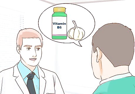 Talk to your doctor about taking herbal or nutritional supplements. There are many herbal and nutritional supplements that can accomplish many of the same things prescription medications can do. However, many of these interact with each other or with medications you're already taking in dangerous ways. Your doctor can assess whether a particular supplement would likely benefit you, based on your situation and your health needs. Some supplements commonly used to treat clogged arteries include: Folic acid (400 mcg per day), vitamin B6 (25-100 mg per day), vitamin B12 (2-100 mg per day), antioxidant vitamins (beta-carotene, C, and E), and vitamin D; Coenzyme Q-10 (CoQ10), which may boost levels of antioxidants in your blood and prevent heart attacks; Omega-3 acids, found in fish oils, which may prevent the development of plaque and blood clots; Garlic, which may lower cholesterol levels and destroy plaque in the arteries; and Psyllium, which may lower both cholesterol levels and blood sugar levels.