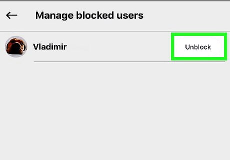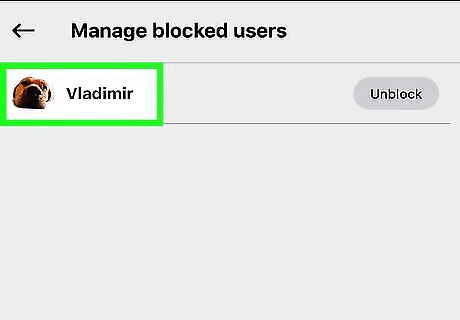 Find the user whom you want to unblock. Scroll through your block list until you find the right person.