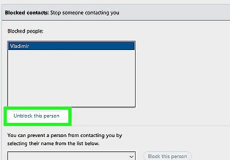 Click the Manage blocked contacts link. It's below the "Contacts" heading. Doing so will open a list of your blocked contacts.