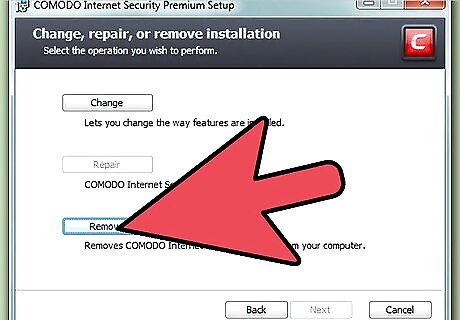 Click Remove from CIS Premium Setup - Change, repair, or remove installation.