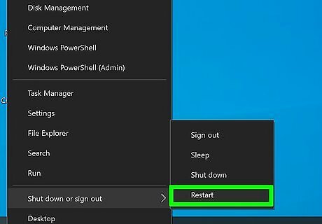 Restart your computer. On boot, you should see some text on the screen listing a button to press. If there's only one button given, press it until a menu opens up. If there are multiple buttons given, press the one labeled Boot Menu.you can't erase the hard drive on your C drive when you're booted into Windows. If you entered a full screen menu, you will need to navigate over to a boot menu. If the menu you see on your screen is mainly blue and white, you'll need to navigate using your keyboard. If the menu is graphical, you can use your mouse. Once there, you should see the installation media listed there. If it isn't there, something might have gone wrong. If you pressed the button to open the Boot Menu, you should already see a list of bootable devices. Navigate to the installation media. Boot into it.