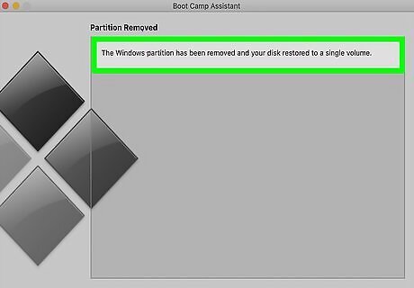 Open the Boot Camp Assistant, then click Continue. If the Select Tasks step appears, select Remove Windows 10 or later version, then click Continue.