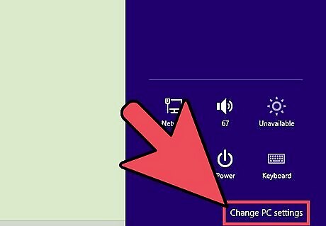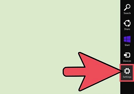 Swipe in from the right side of your screen and select “Settings.” If using a mouse, point to the lower right corner of your screen, move the mouse pointer up, and select “Settings.”