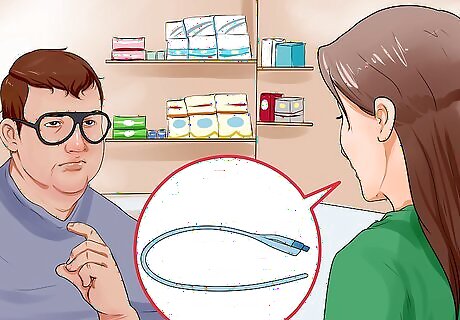 Buy the catheter at a medical supply store. Catheters and any other supplies can be obtained at local medical supply stores once you get a prescription for a catheter. The other supplies needed may include towelettes for cleaning before and after and lubricants to make the process easier. Only use lubricants provided with the catheters, which are sterile and water based. Don't try using other lubricants like mineral oil or petroleum jelly because these can damage the catheter material, clog up the opening and make it less comfortable to remove, as well as increase risks of complications such as urinary tract infections.