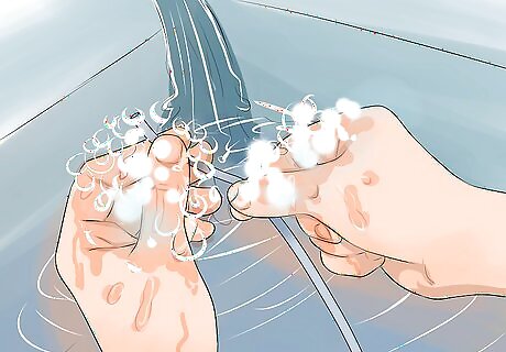 Wash your hands. After gathering all the supplies, wash your hands with soap and water. This ensures you don't contaminate anything or cause an infection.