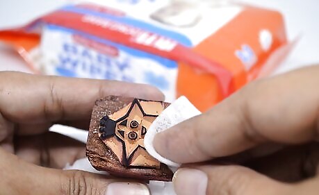 Wipe your stamp with alcohol-free baby wipes after use. This removes all of the ink or paint on the stamp. It also ensures your stamp is clean and ready to use next time.