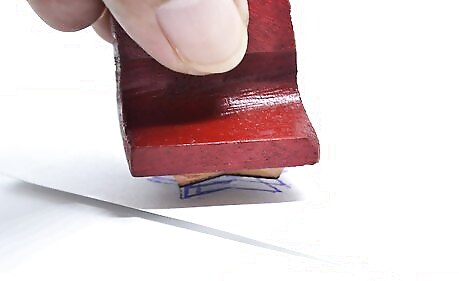 Apply even pressure. Don't favor one side of the stamp over the other. This can make one part of your stamped area look really light, while other parts look darker. Instead, place your palm over the center of the stamp and press down evenly.