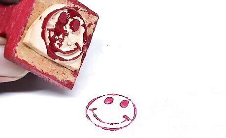 Stamp firmly. It’s especially important not to press too hard on your stamp if you’re using paint. If you do, the paint might smoosh out of the sides of the stamp.