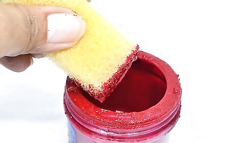 Dip a sponge into your paint. You can use craft paint or even regular paint if you’re stamping on furniture or walls. If you’re working on a larger project, pour some of your paint onto a paper towel. This will act as a big ink pad.