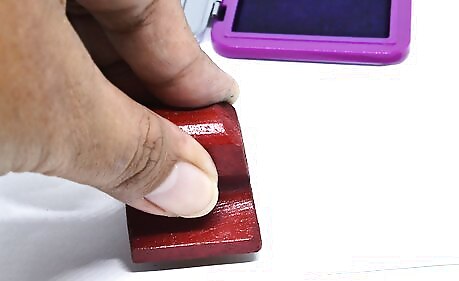 Run your finger over the top of the stamp. This is especially important if you’re using a larger stamp. Running your finger over the top ensures an even application of ink without you having to rock and wiggle the stamp.