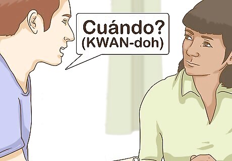 Leave adverbs on their own as interrogatories. Just as in English, you can ask questions in Spanish using only one word, such as who or when. These adverbs that stand alone are punctuated as a complete sentence, and don't have to agree with anything. For example, suppose someone was inviting you to a party, but you didn't quite catch the date and time the party was starting. You could simply ask "when?" by saying "¿Cuándo?" (KWAN-doh).