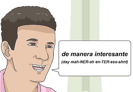 Learn how to form adverbial phrases. Peppering your Spanish with these diverse phrases can make you a more dynamic and interesting writer or speaker. For example, in English, rather than saying "interestingly," you might say that something was done "in an interesting manner" or "in an interesting way." You can do this in Spanish as well, with the phrase de manera interesante (day mah-NER-ah een-te-re-san-teh).