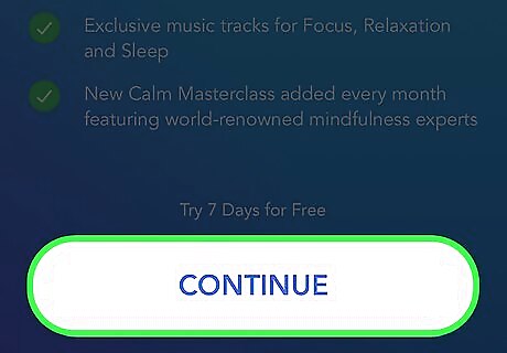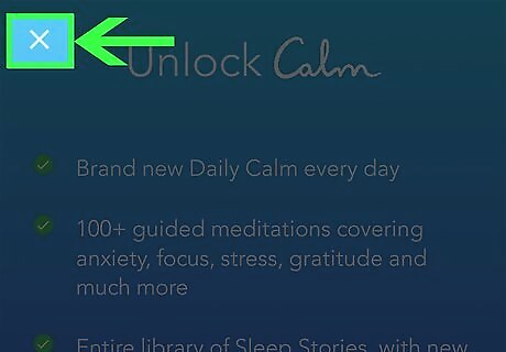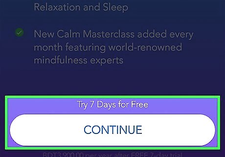 Open Calm. It’s the blue icon that says ″calm″ in white letters. You’ll usually find it in the app drawer or on the home screen. You can try Calm at no cost for 7 consecutive days. You must cancel the trial before the end of the 7th day to avoid being charged for a 1-year subscription. If you don’t want a free trial or subscription, you can still use some of Calm’s relaxation techniques, one sleep story, and a beginners mindfulness lesson.