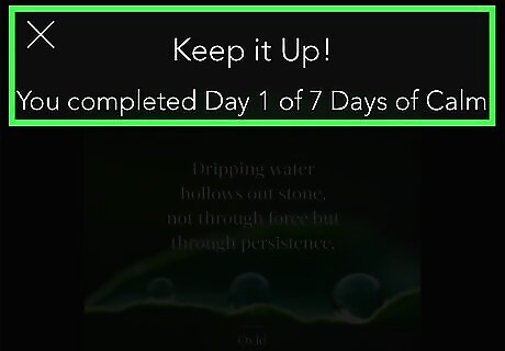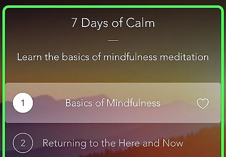 Browse for a meditation that interests you. If you’re subscribed or using the trial, swipe left on the category menu at the top of the screen to see available topics, then tap a topic to browse its meditations. If you don’t have a paid membership or trial subscription, you can only access 7 Days of Calm. If you’re new to meditating in general (and have a subscription or trial membership), try the Beginners category.