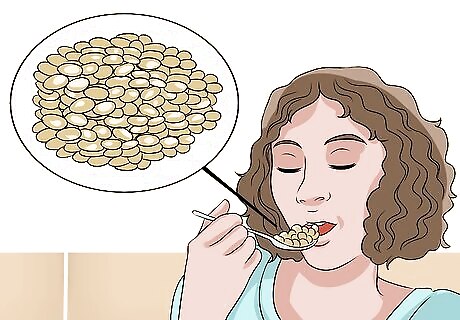 Get your minerals. The only mineral that has been proven to be connected to hair loss is iron. While low zinc and low selenium have been implicated in hair loss, it is still unknown whether zinc or selenium deficiencies play a primary or secondary role in hair loss. Because the research on the relationship between minerals and hair loss and growth remains inconclusive, it's best that you are cautious in taking mineral supplements and follow any doctor's recommendations as well as manufacturer's instructions on the supplement's packaging. Wherever possible, try to get your minerals from your diet. Food high in iron include: Eggs Red meat (go for grass-fed beef or buffalo-- these are higher in omega-3 fats as well) Dark, leafy green vegetables Beans and lentils Liver Foods high in zinc include: Seafood and shellfish, oysters Spinach Pumpkin, squash, sunflower seeds Various nuts