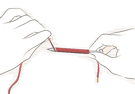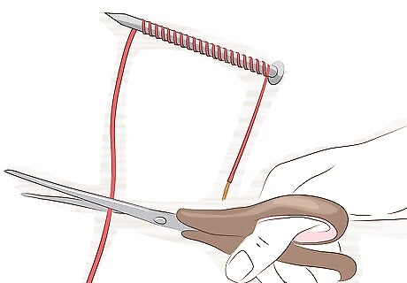 Cut at least 2 feet (0.61 m) of magnetic wire. You can purchase magnetic wire online or at a hardware store. Make sure that you have enough wire so that you can wrap it around a nail several times and still have 3 inches (7.6 cm) of excess wire hanging from each end. Magnetic wire is copper wire with a rubber coating around it. Uncoated wire won’t work for this project.