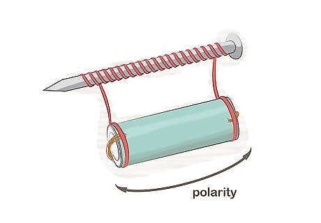 Snip the excess wire with a pair of scissors. Leave at least 3 inches (7.6 cm) of excess wire at the top and bottom of the nail. This will give you enough wire to touch the contacts on the battery.