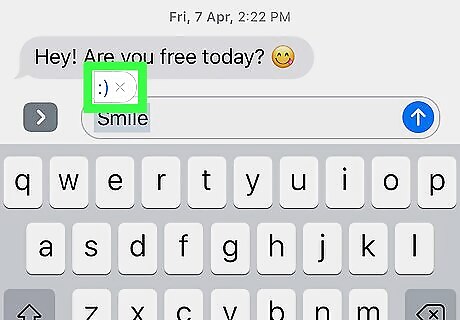 Tap the emoji. When you type the shortcut, the emoji will appear above the keyboard like a word or spelling suggestion. Tap it to replace the shortcut text with the emoji.