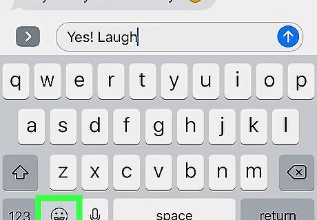 Tap the emoji button. It’s the smiley face at the bottom left side of the keyboard.