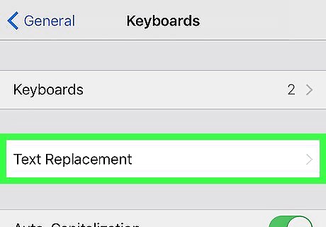 Tap Text Replacement. This option may be called “Shortcuts” in some versions of iOS.