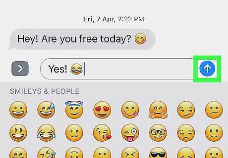 Tap the arrow to send the message. It’s the green button with a white arrow. The recipient will now receive the message with an emoji in place of the original word.