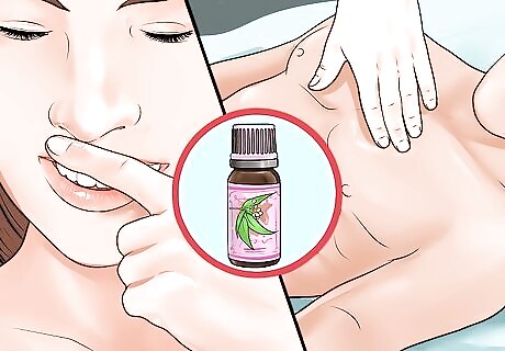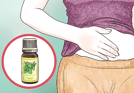 Use peppermint essential oil to soothe an upset stomach. You’ve probably heard that peppermint tea can soothe an upset stomach. Likewise, peppermint essential oil can be used to ease nausea and digestive issues. Simply create a large area dilution (3-5 drops per teaspoon of carrier oil) and rub the mixture on your abdomen to ease stomach pain. Other oils that can be used in this manner include ginger, nutmeg and spearmint essential oils. Applying a warm compress to the stomach after applying the oils may also help to relieve pain and discomfort. Most research has found that peppermint oil taken orally is likely to be effective against symptoms of Irritable Bowel Syndrome.
