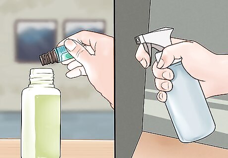 Use essential oils to make your own room spray. Fill a small spray bottle with 2 ounces of distilled water and 2 ounces of vodka or witch hazel. Then add 30-40 drops of your favorite essential oil (or a blend of two or more oils) and shake well. Spray this essential oil room spray into the air and onto furniture and linens, but take care to avoid polished surfaces.
