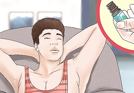 Place a few drops of oil in hot water. If you don’t have a diffuser or candles handy, you can just fill a small bowl or saucer with boiling water and then add a few drops of essential oil. The steam will waft the aroma of the oil around the room. Just make sure that you place the dish somewhere out of reach of pets and children.