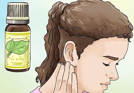 Ease earaches with essential oils. Topical application of some essential oils can help to naturally clear up ear infections and to ease any pain associated with them. The oils should not be applied inside of the ear, but rather applied along the neck and behind the affected ear. Tea tree essential oil is one of the best oils for relieving earaches. Create a concentrated area dilution (3-5 drops per teaspoon of carrier oil) and massage behind ears and on the neck.