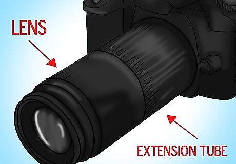 Gather the camera and one or more extension tubes. An extension tube creates more distance between your lens and the image plane in the camera, which will let you get closer to a smaller subject and thereby fill more of the image frame with a sharply focused subject. A "macro shot" is defined when an image is bigger than the original subject is.