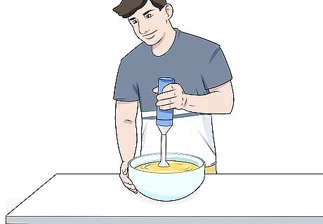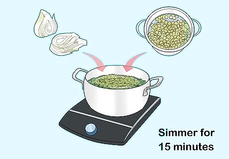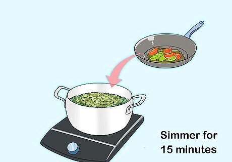 Blend your soup. First, let the soup cool off for a minute or two to avoid splattering yourself with hot liquid. Then either use an immersion blender to blend the soup in the saucepan, or ladle it into a standing blender in batches. In the latter case: Fill the standing blender no more than halfway, pulse several times, then blend until smooth. Pour the first batch into a large serving bowl. Repeat and stir each new batch added to the serving bowl to mix evenly.