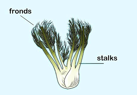 Anticipate needing only the bulb for most recipes. When a recipe calls for fennel, expect it to specify only one part of the fresh piece that you just picked up at the store. Most likely, this will be the fennel's "bulb." Don't freak out if you've already used the whole thing when you weren't supposed to, though. Rest assured that all of its parts are perfectly edible, and that the only consequence of using the whole thing is an alteration in the dish's intended flavor. The bulb is the round, ball-like base of the vegetable, usually white and/or pale-green in color.