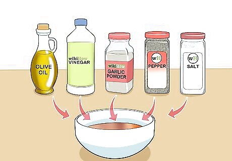 Use the juice as a vinaigrette base. Add your olive oil, vinegar, garlic powder, salt, and pepper to the first bowl. Whisk them into the reserved grapefruit juice. Add your leafy greens and toss to coat.