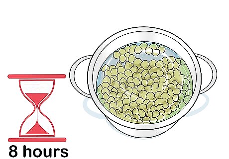 Soak your chickpeas. Pour them into a pot. Fill with water until all are covered. Let them soak for at least eight hours. Once hydrated, transfer them to a strainer, drain, and rinse. As an alternative, you can use canned chickpeas instead and skip this step.