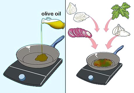 Saute your veggies. Coat the bottom of a large saucepan with the olive oil. Turn the burner to medium-high heat. Once the oil heats up, add the fennel, onion, celery, and garlic. Saute for ten minutes.