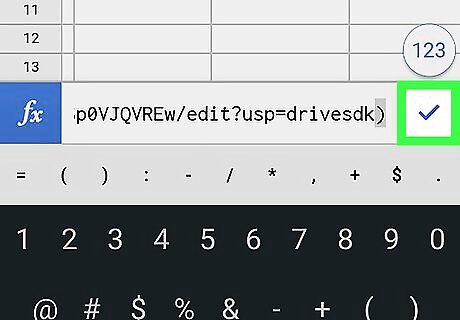Tap Android 7 Done. It’s on the right side of the “fx” bar. This runs the formula. In a few moments, the selected cell range will appear in the current file.
