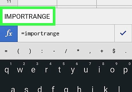 Tap IMPORTRANGE. The “fx” box now reads =IMPORTRANGE().