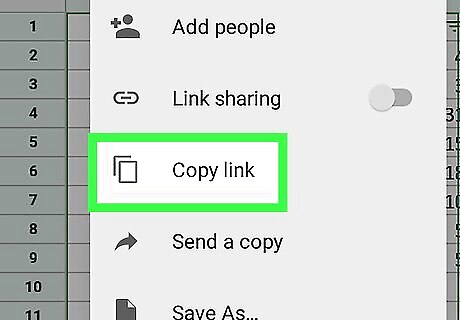 Tap Get link. A link to this spreadsheet is now copied to your clipboard.