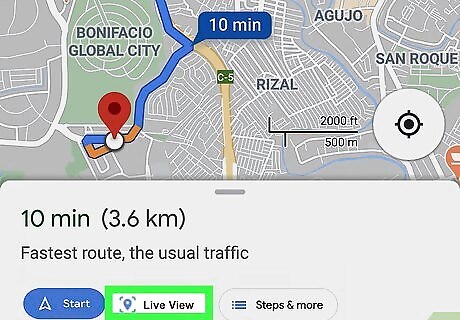 Tap the walking icon. This is usually the third icon from the left of the screen. If the feature is available for your phone, you'll see "Live View" appear at the bottom of your screen next to "Start."