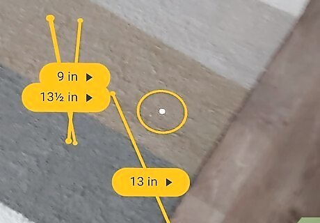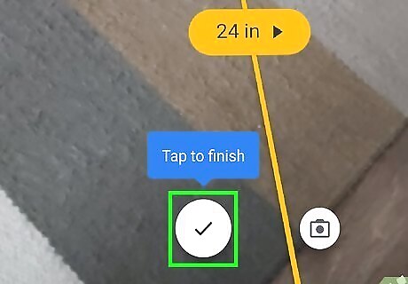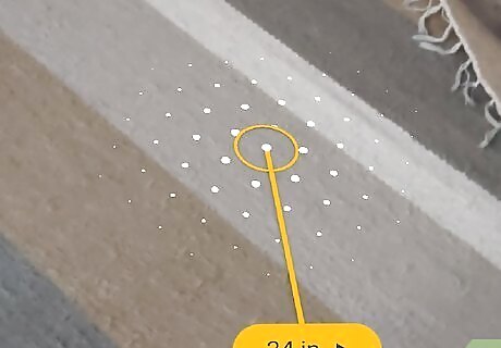 Measure projected volume. Projected volume is a way to measure how much space a two-dimensional geometric shape (e.g., a square) would take up if it were made three-dimensional; this feature is useful for measuring out cabinet space or something similar (e.g., how far a TV will stick out into a room if it is mounted on a wall). To do this, you will need to do a couple of things: Place a minimum of three connected points over an area. All of the points must be connected to one another to form a geometric shape. Tap and hold the "A" in the middle of the shape. Walk backwards--or move the phone--until the shape pulls away from the wall. You should see lines portraying the distance between the wall and the end of your shape that's closest to you. Pull the shape as far out from the wall as you wish to measure.