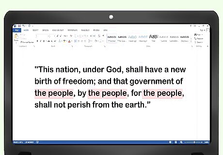 Repeat key words and phrases to create cohesive paragraphs. The overuse of repetition makes writing seem boring, but when used thoughtfully, it can add emphasis to your most important ideas. If you want your writing to be really clear, if you want your writing to have a strong impact, and if you want your writing to be unforgettable, you should use this form of parallelism. One of the most famous examples of this type of parallelism is Martin Luther King's "I Have a Dream" speech. By repeating the phrase "I have a dream," he created a dramatic effect that still moves people today. Another example is found in Abraham Lincoln's Gettysburg Address: "This nation, under God, shall have a new birth of freedom; and that government of the people, by the people, for the people, shall not perish from the earth." The repetition of "the people" emphasizes President Lincoln's belief that the United States should represent all Americans. A bad example of this would be something like, "Before I went to the store, I put on my socks. After I put on my socks, I put on my shoes. After I put on my shoes, I got my keys. After I got my keys..." The repetition here doesn't serve to highlight a particular point, and it gets boring quickly.