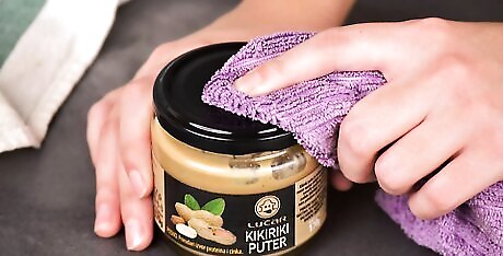 Remove sticker residue. Peanut oil and peanut butter are great for removing glue and sticker residue from surfaces. Scrape away as much of the sticker as possible. Use a clean cloth to saturate the residue with peanut oil. Let the oil soak for about five minutes, and then scrape away the residue. Wipe the area clean with soapy water before rinsing and drying the surface.