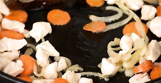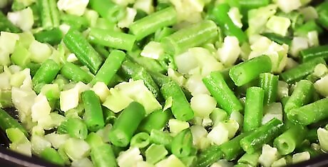 Use peanut oil in stir fries. Stir frying is the process of cooking small pieces of food quickly at a high temperature in a small amount of oil. Peanut oil is ideal for this type of cooking because of its high smoke point and neutral flavor. To stir fry any type of food: Heat a wok or skillet over medium heat Add 1 to 2 tablespoons (15 to 30 ml) of peanut oil When the oil is shimmering, add chopped garlic, onion, and other aromatics Cook for 30 seconds to a minute Add bite-sized pieces of meat or vegetables and cook for five to seven minutes, stirring constantly Add your favorite sauces Serve warm