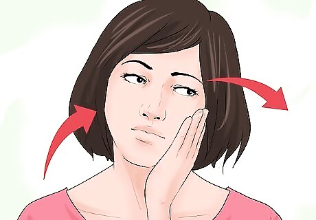 Progress to isometric strengthening exercises. Once the pain and inflammation in your neck has settled down and you've reestablished good range of motion from stretching, it's time to start strengthening exercises. It’s best to begin your strengthening with isometric exercises. Keep your head in a neutral position and bring your right hand up to your right cheek. Turn your eyes slightly to the right and attempt to gently turn your head to the right, while applying just enough resistance with your right hand to prevent your head from moving. You should only apply 5 to 10% of total effort when trying to turn your neck. Repeat this five times. Next, place your right hand to the right side of the head. Now attempt to laterally flex the head to the right, as if trying to touch your ear to your right shoulder. Again, apply just enough resistance to prevent your head from moving (5 to 10% of total effort). Bring your right hand and place it on the front of your head at the forehead area. Try to bring your head forward and flexing down, but apply just enough pressure with your right hand so that your head does not move. Bring your right hand behind your head. Try extending your head, with just enough resistance (5 to 10%) so your head doesn’t move. Repeat all the exercises again by using your left hand over the left side of your head. Perform this exercise three times per week.