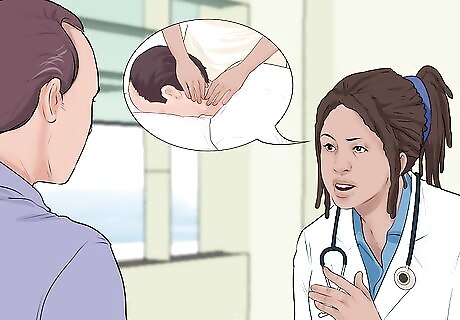 Get a gentle soft tissue massage from a massage therapist. Whiplash injuries often involve significant ligament sprains and muscle / tendon strains, which leads to inflammation and spasm. Let the massage therapist know you've recently suffered whiplash, and ask them to gently massage your neck, shoulders, and upper back. Tight suboccipital muscles can trigger severe head pain called cervicogenic headaches. Always drink lots of water immediately following a massage in order to flush out inflammatory by-products and lactic acid from your body. Failure to do so might cause a dull headache or mild nausea.