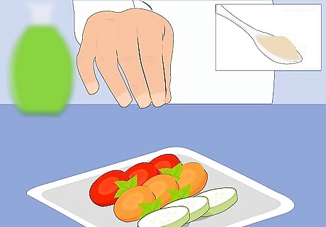 Sprinkle the powder over food. Another way you can get your daily teaspoon or tablespoon of superfood powder is to sprinkle it over your meals and snacks. Try maca or açaí powder over yogurt, or sprinkle some baobab over your cereal or oatmeal. You may want to try adding the powder to quinoa, sprinkling it on top of vegetables, or mixing it into your soups. Some powders, such as spirulina, are delicious when sprinkled over fresh-popped popcorn. Popcorn is a whole grain, so if you prepare it without adding salt or fat (butter), it is a very healthy snack.