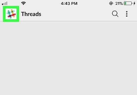 Tap the Slack logo. It’s the hashtag at the top-left corner of the screen.
