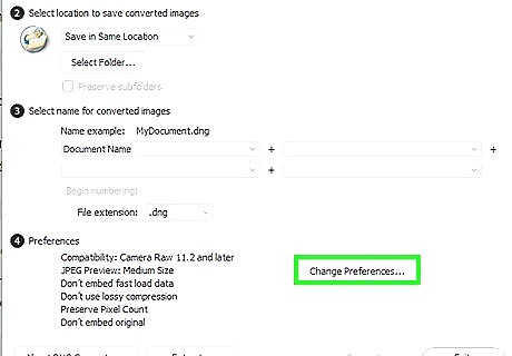 Click Change Preferences (if you need to). Some versions of Photoshop require you to change the ACR compatibility to match your version of Photoshop. If you're using a newer version of Photoshop, skip this step.