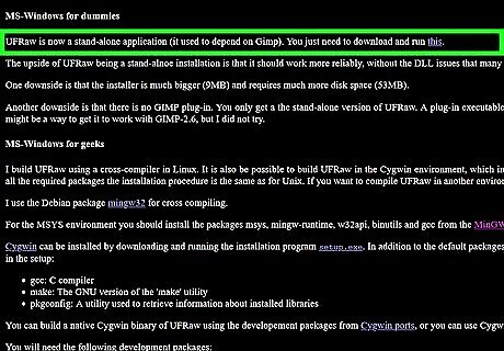 Go to https://ufraw.sourceforge.net/Install.html#MS. UFRaw is a free software you can use to view CR2 files on Windows computers. However, you will only be able to do minor color edits to these files. This will direct you to the middle of the page, in a wall of text.
